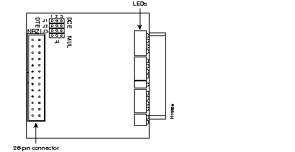 The Synchronous Data Link Control (SDLC) nonreturn to zero inverted (NRZI) applique has a female 25-pin D-type connector. An internal ribbon cable attaches to the 26-pin connector. (See Figure A-9.) Jumpers J1 and J2 set the mode (DCE or DTE); J3 sets the nonreturn to zero function; and J4 has no user function (default position on pin 1 and 2). (See Table A-10.) Table A-11 lists the pinout for the SDLC DCE applique and the crossover cable required when the SDLC applique is used in DTE mode.