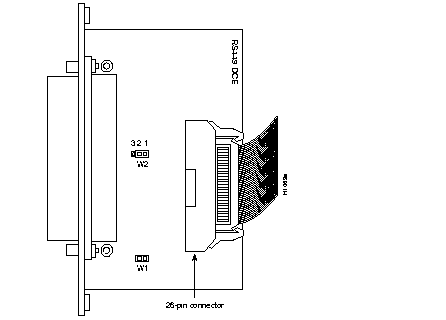 The RS-449 DTE applique contains a male 37-pin connector, while the RS-449 DCE applique contains a female 37-pin connector. The internal ribbon cable connects to the 26-pin connector. The mode is labeled on the circuit card (either RS-449 DTE or RS-449 DCE). The RS-449 DCE applique is shown in Figure A-10, and the RS-449 DTE is shown in Figure A-11.