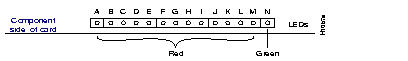 The red LED on the far left end of the bank of LEDs is the Power-On LED (No. 1). The next LED is the green Processor LED (No. 2). The remaining eight LEDs (3 through 10) are all red. At system boot, these eight LEDs will change state to indicate that the card is being initialized. The seven initialization states of LEDs 3 through 10 are shown in Table B-1.