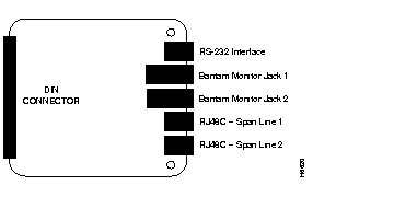 2 Bantam Monitor jacks for E1 NIC (not supported at this time) EIA/TIA-232D modular 8 RJ-48C connector for configuration and software download with a PC, terminal, or modem DIN connector to chassis midplane Menu-driven operator interface via the EIA/TIA-232 port |