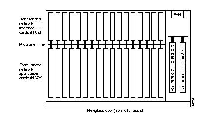 The chassis midplane provides connectors on the front for NACs and connectors on the back for NICs. The cards communicate through multiple data buses located in the midplane.