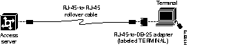 Use the RJ-45-to-RJ-45 rollover cable and RJ-45-to-DB-25 female DTE adapter (labeled TERMINAL) to connect the console port to a terminal. Figure C-3 shows how to connect the console port to a terminal. Table C-2 lists the pinouts for the asynchronous serial console port, the RJ-45-to-RJ-45 rollover cable, and the RJ-45-to-DB-25 female DTE adapter (labeled TERMINAL).