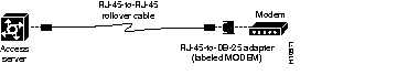 | AUX Port (DTE) | RJ-45-to-RJ-45 Rollover Cable | RJ-45-to-DB-25 Modem Adapter | Modem | |