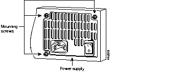 Step 4 Remove the three mounting screws that secure the power supply to the chassis and set them aside. (See Figure A-19.)