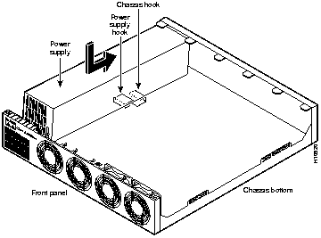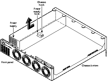 Step 12 Slide the power supply toward the front panel to disengage the power supply hook from the chassis hook as shown in Figure A-25. Then remove the power supply from the chassis.