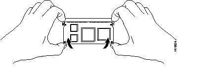 Step 5 Remove the existing Flash memory SIMM by pulling outward on the socket latches and then lifting the SIMM out of the socket (see Figure A-17).
