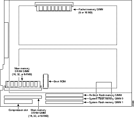 Step 4 Place the chassis so that the system card is oriented as shown in Figure A-14, with the Flash memory SIMMs toward you. The system code SIMM sockets are labeled SIMM0 and SIMM1; the rxboot SIMM socket is labeled SIMM.
