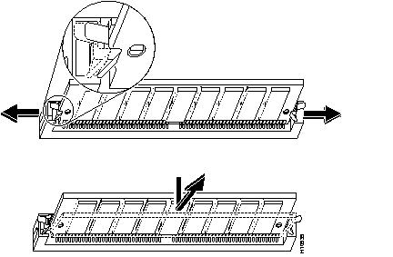 Step 8 Gently rotate the SIMM until the latch on either side snaps into place. Do not use excessive force because the connector might break. When inserting the new SIMM, make sure that the polarization notch is located at the right end of the SIMM socket.