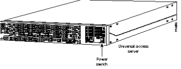 Step 1 Power ON the access server. The power switch is on the rear panel of the access server, at the lower right corner near the power cord.