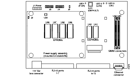 You must remove the power supply assembly to access the EPROMs. The power supply is mounted on a raised platform about two inches above the main circuit card, as shown in Figure 4-8. Perform the following steps to remove the power supply assembly.