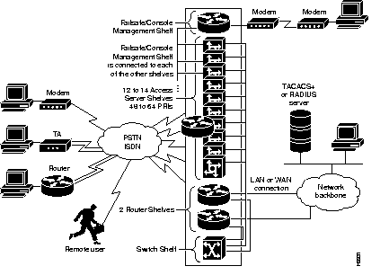 The Access Server Shelves employ a versatile data communications platform that provides the functions of an access server, a router, and digital modems in a modular chassis.