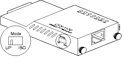 The 100BaseTX transceiver has one switch setting and seven diagnostic lights. Make sure that the switch is in UP ("Up and Running") mode (shown in Figure 3). In this case, the transceiver is free to transmit and receive data. The ISO ("Isolation") mode applies only if the transceiver is configurable by the host's software, and thus does not apply here.