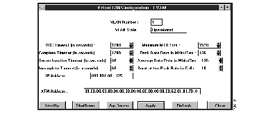 You use the configuration features of the Cisco ATM Administrator to set and modify VLAN parameters. Parameters are used to store information such as the external server for IP over ATM protocol. You can modify VLAN configuration parameters at any time after adding the virtual LAN to the system.