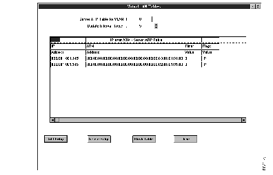 Figure 5-31 shows an example of an IP over ATM VLAN server ARP table. As in the client ARP table, most fields of the server ARP table are read-only. You modify them by explicitly deleting them and adding the new address entries.