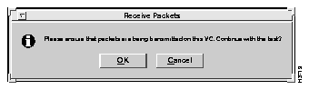 A confirmation window appears, as shown in Figure 6-5. Verify that another system is transmitting data and select OK. After the parameters have been set and the test has been run, the results appear in the Receive Packet Test display, as shown in Figure 6-6.