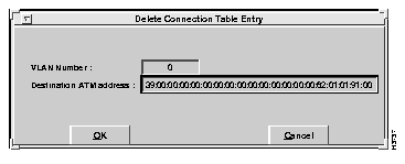 To delete an entry from the connection table, select Delete Entry from the Connection Table window. The Delete Connection Table Entry window appears, as shown in Figure 6-28.