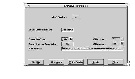 To start a VLAN, select the Startup option from the ARP Server Information Window, shown in Figure 6-33. The VLAN is initialized for operation.