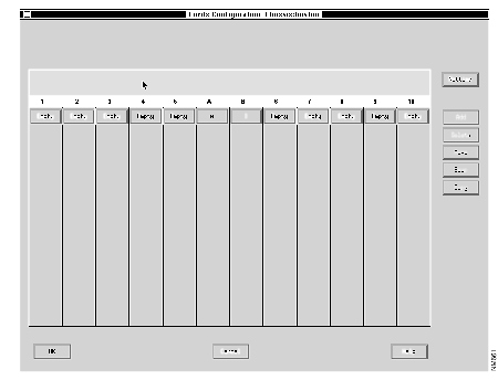 Step 2 Click on the push button below the number of the slot that you want to configure. This button is labeled Empty, or, if it has been previously configured, it is labeled with an abbreviation for the card type. After you click on a push button, card configuration attributes are displayed across the top of the dialog box (see Figure 3-7).