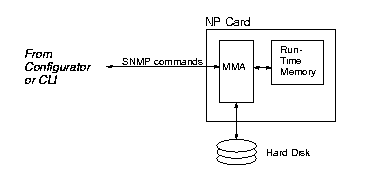 The master management agent (MMA) is a software process running on the NP. The MMA binds the different objects in the local configuration database together in order to present the database as a unified image. The MMA acts as the local configuration database manager and provides access to the database for the CLI and configurator. Figure 1-2 shows the flow of configuration information through the MMA.