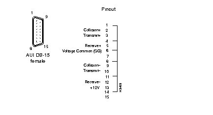 The AUI DB-15 connector pin assignments shown in Figure 3-32 apply to the following access cards: