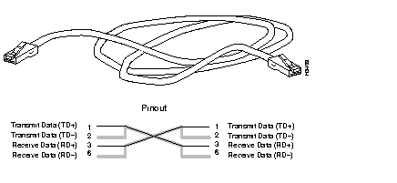 Figure 3-31 shows a physical representation of the Ethernet 10BaseT (twisted pair) crossover cable and provides a schematic diagram of its pin assignments.
