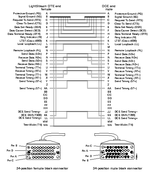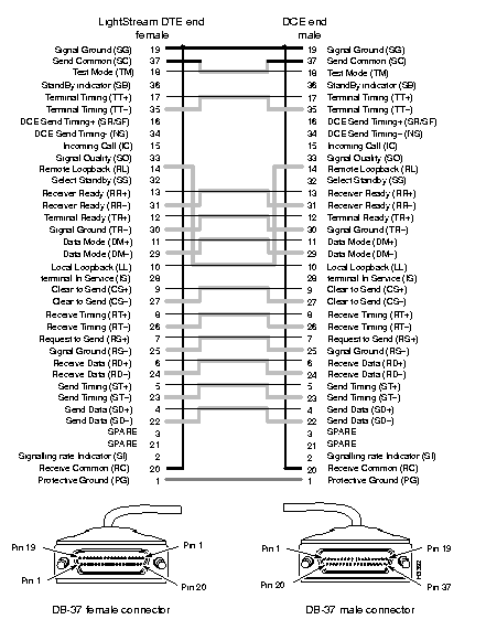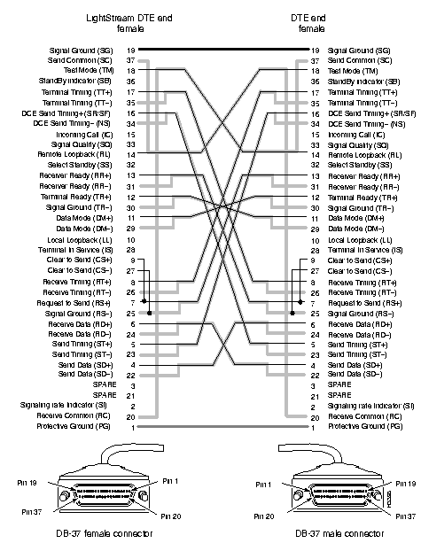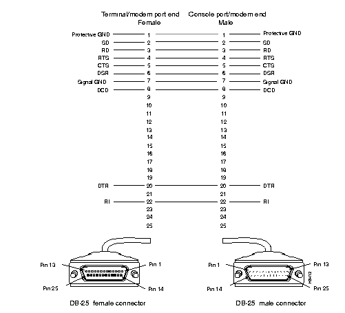 Figure 3-39 shows the DB-25 connectors associated with the RS-232 straight-through data cable and provides a schematic diagram of the pin assignments for the cable.