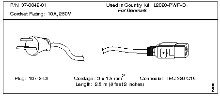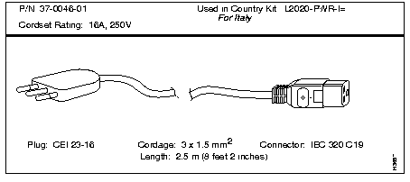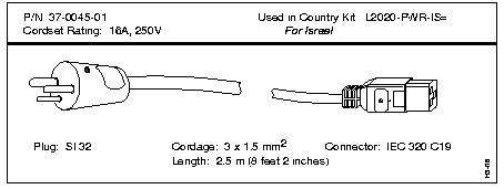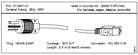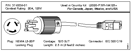Following Table 3-5 is a series of illustrations summarizing the specifications of all the power cordsets available for the LS2020 switch. These summaries are arranged according to the cordset manufacturing part number.
