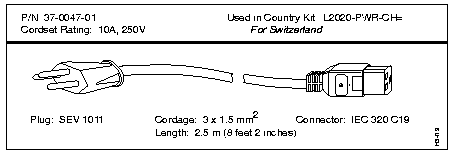 A variety of power cordsets is available for AC-powered LS2020 switches. These cordsets are available either with new system orders or as spare parts. This section provides information that will enable you to choose the proper cordset for your LS2020 site.