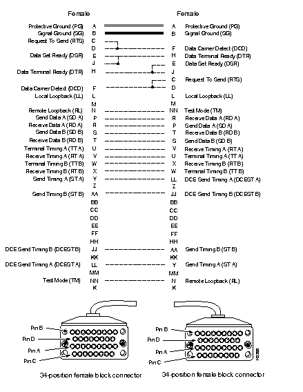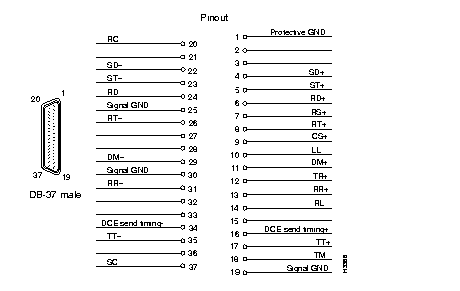 Figure 3-13 is a signal diagram for the V.35 interface straight-through cable.