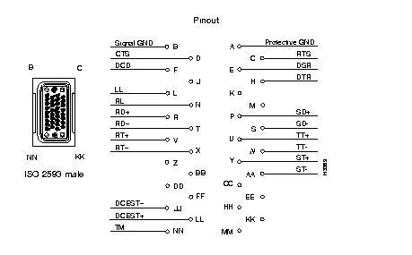 Figure 3-8 illustrates the pin assignments for the four V.35 interface ISO 2593 connectors (I/O ports) present on the V.35 fantail.