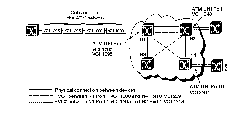 An ATM UNI PVC is defined by the two ATM endpoints (the source port and the destination port) at the edges of the network and the local virtual channel identifiers (VCIs) associated with that particular PVC. The VCI is a value used by ATM switching devices to identify the virtual channel links that form a part of the overall virtual channel connection.