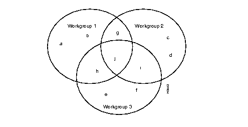 Port j belongs to all three workgroups; therefore, it can communicate with all other ports.