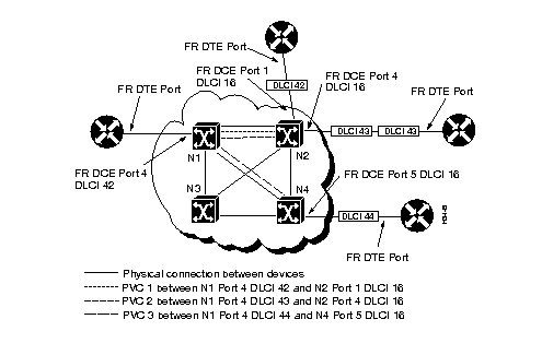 Figure 3-6 shows three Frame Relay PVCs. As Figure 3-6 indicates, more than one Frame Relay PVC can exist between the same LS2020 switches.