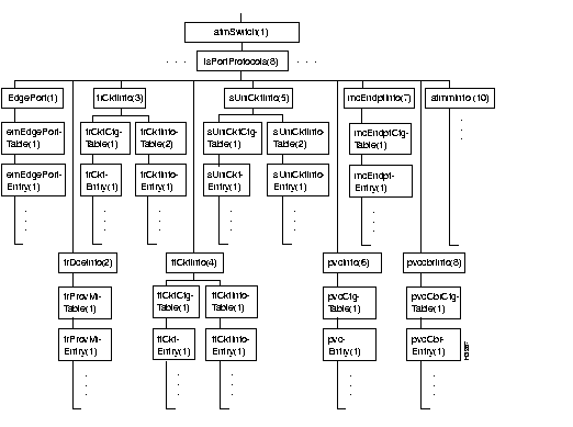 Figure 7-13 shows portions of the lsExperimental branch of the atmSwitch subtree.
