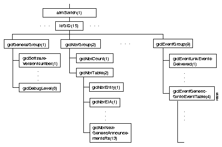Figure 7-16 shows the lsGID branch of the atmSwitch subtree.