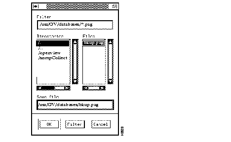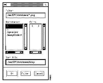 You can use the Filter button in the pop-up menu to search a directory for files with common strings in their names. For example, in the screen shown in Using the Filter Pop-up Menu to Open a Database File, the filter field shows as a default a search for files ending in .pag. To search for other files, you can click in the Filter field, change the search string, and then click on the Filter button to display files that correspond to the search string you have specified.