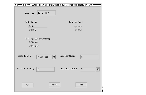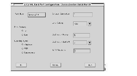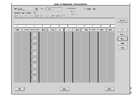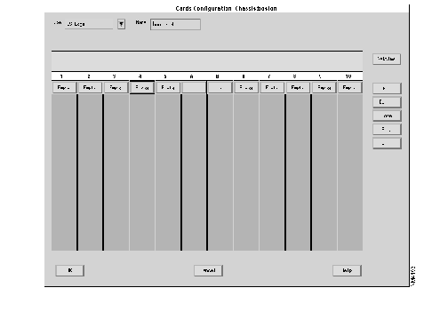 Step 2 Click on the push button below the number of the slot that you want to configure. This button is labeled Empty, or, if it has been previously configured, it is labeled with an abbreviation for the card type. After you click on a push button, card configuration attributes are displayed across the top of the dialog box (see Figure 3-7).
