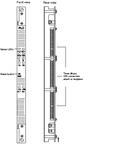 The PLC's control processor is a 25MHz Motorola 68EC030 microprocessor. Associated with the control processor are 4 MB of DRAM and 1 MB of flash EPROM that stores bootstrap and POST code. The LEDs for this card are described in the appendix "LEDs."
