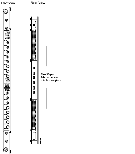 T3 medium-speed access cards (which are labeled MSAC) operate in conjunction with medium-speed line cards. T3 MSACs support up to two ports each. Figure 2-19 shows front and rear views of an MSAC.