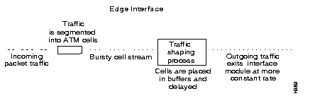 In an LS2020 network, traffic shaping is performed at all packet interfaces (see the incoming packet traffic in Figure 4-6). Traffic entering ATM UNI interfaces, however, does not need to be shaped, since such traffic obeys the traffic policing parameters established for each VCC.