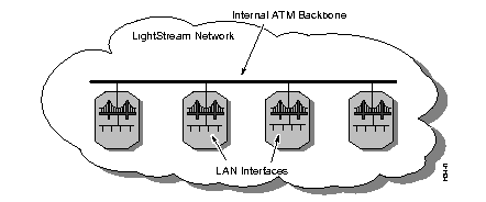 From a user's point of view, a LightStream network is modeled as a collection of bridges connected through the ATM backbone with one bridge per LightStream switch. Externally, all of the bridges in the network appear to be sharing a single broadcast medium on the inside of the ATM network. In the model, each bridge in a LightStream network has one internal connection to an internal broadcast backbone.
