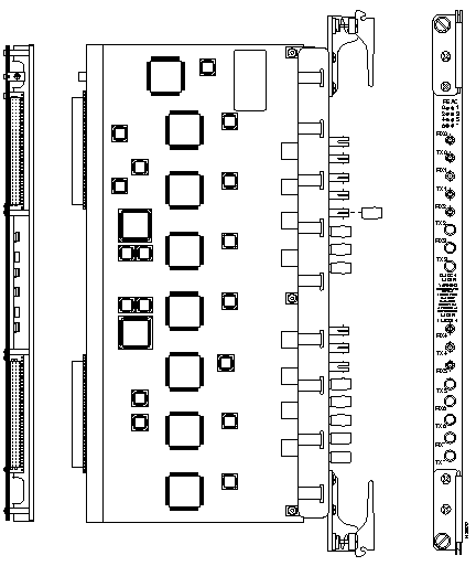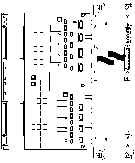 Signals are carried from the line cards to the switch card and the access cards by 96-pin DIN connectors on the midplane. The center connector connects the line card to the switch card and the upper and lower connectors connect the line card to its access card. (See Figure 1-4, Figure 1-5, and Figure 1-6.)