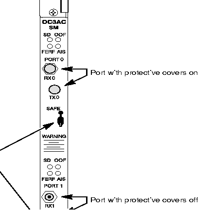 | Safe (Single mode cards only) | Green | Illuminates when the transmit laser on the port is shut off, so there is no danger in looking at the connectors. |