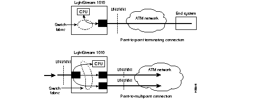The LightStream 1010 ATM switch supports the following types of VC connections, shown in Figure 1-3: