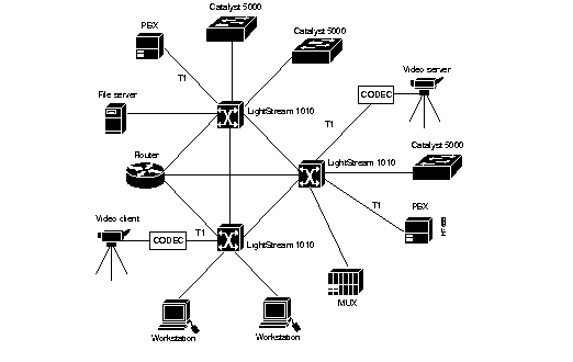 Figure 1-3 shows an example of a network configuration using the LightStream 1010 ATM switch for a campus backbone.