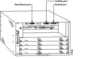 The console and auxiliary ports for the Cisco uBR7246 are located on the I/O controller. The I/O controller also has an optional Fast Ethernet port (refer to Figure 3-12.) This section contains connection equipment and pinout information for the console, auxiliary, and Fast Ethernet ports on the I/O controller.