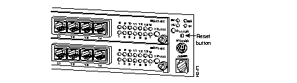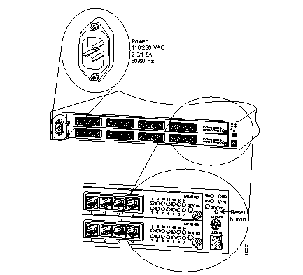 The LEDs on the rear panel of the concentrator (see Figure 1-4) duplicate the LEDs on the front panel and indicate the status of the concentrator (faulty or not faulty), the status of the ring, the configuration state of the dual ring, and the status of each port. (See the section "Front Panel LEDs" earlier in this chapter.)