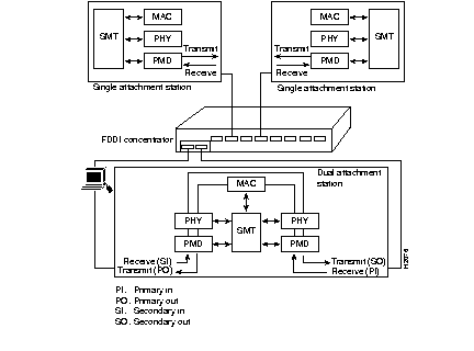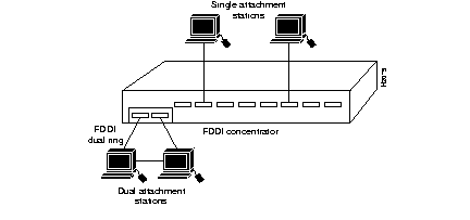 Figure 1-2 and Figure 1-3 show how single attachment stations and dual attachment stations are connected.