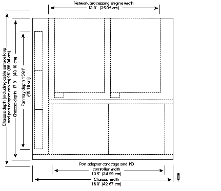 The I/O controller, port adapters, power supplies, and network processing engine slide into their respective chassis slots and connect directly to the router's midplane; there are no internal cables to connect. The midplane distributes DC power from the power supplies to the I/O controller, port adapters, fan tray, and network processing engine.