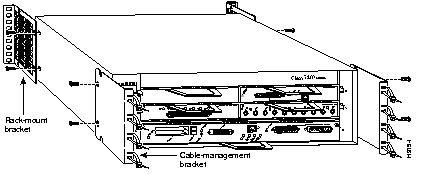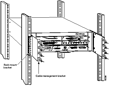 If you are rack-mounting a Cisco 7200 series router from the rear, the rack-mount brackets are installed at the rear of the chassis, and the cable-management brackets are installed at the front of the chassis. You must install both sets of brackets before you install the chassis in the rack.